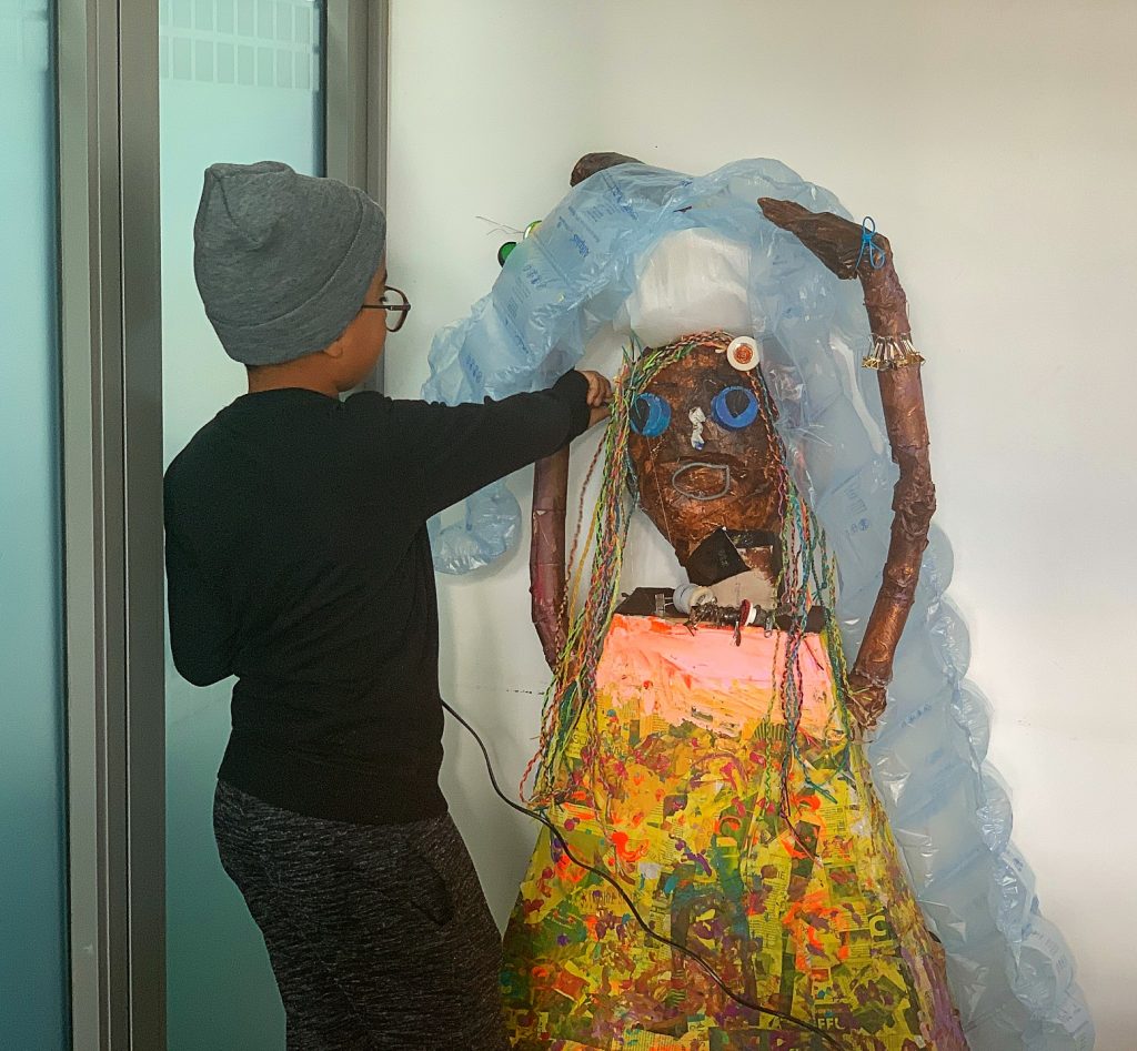 Ça a été le cas notamment lors d’un atelier Recup’Art où les enfants ont pu concevoir une statue représentant une femme africaine portant des jerricanes d’eau sur son dos ou lors d’un atelier où les enfants ont imaginés et produit un roman photo pour imager l’accès à l’eau selon un pays défini.
